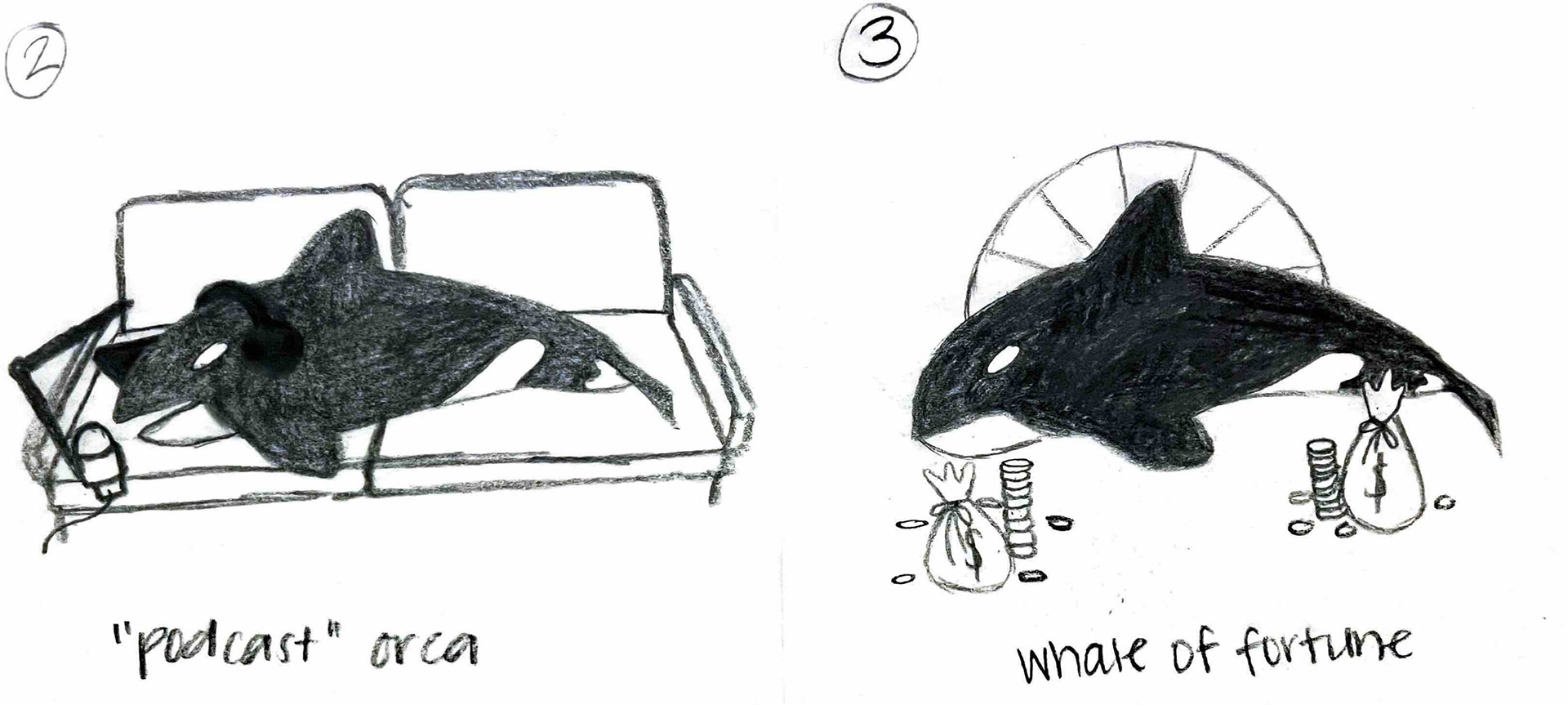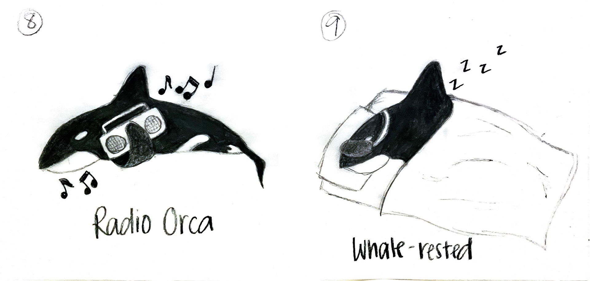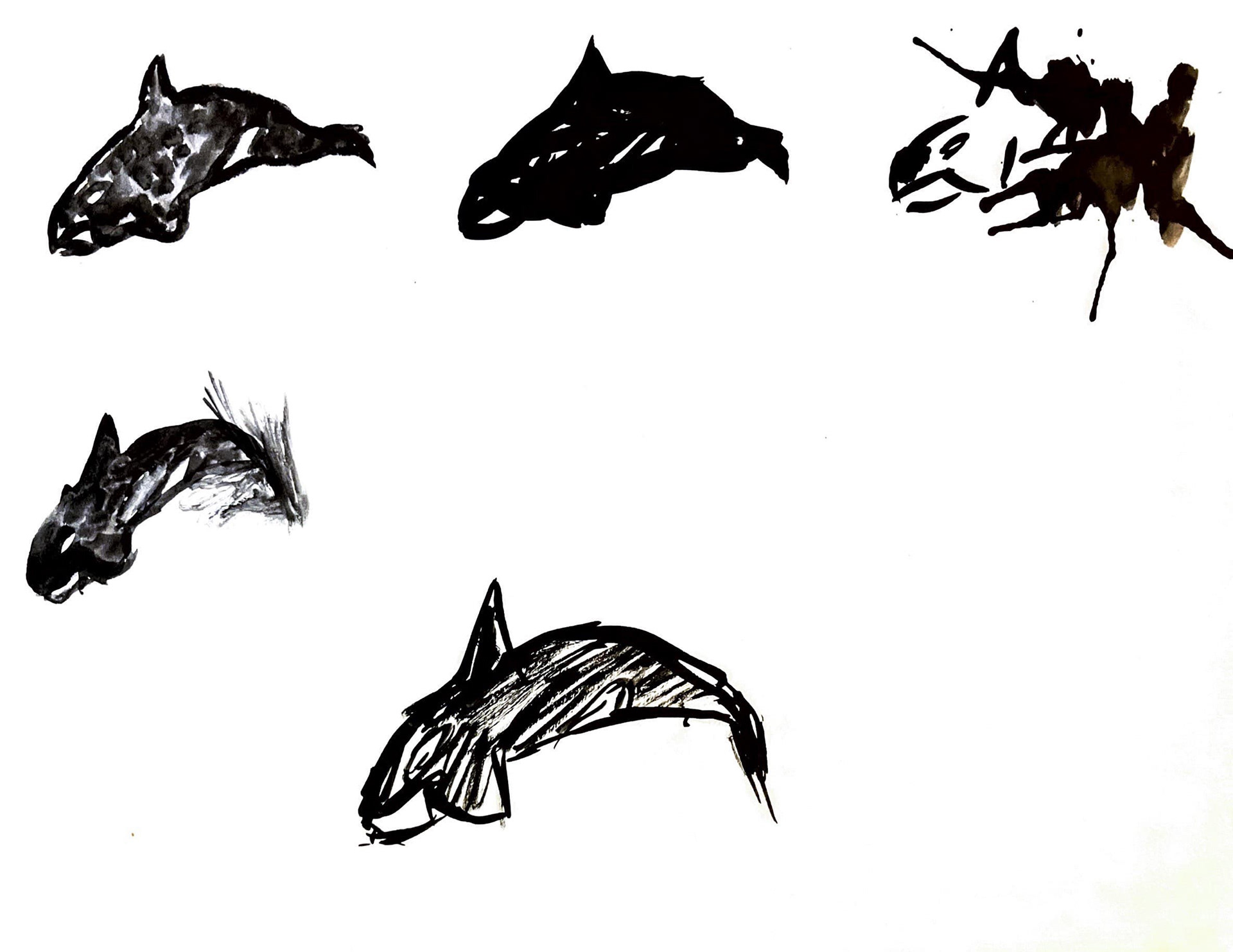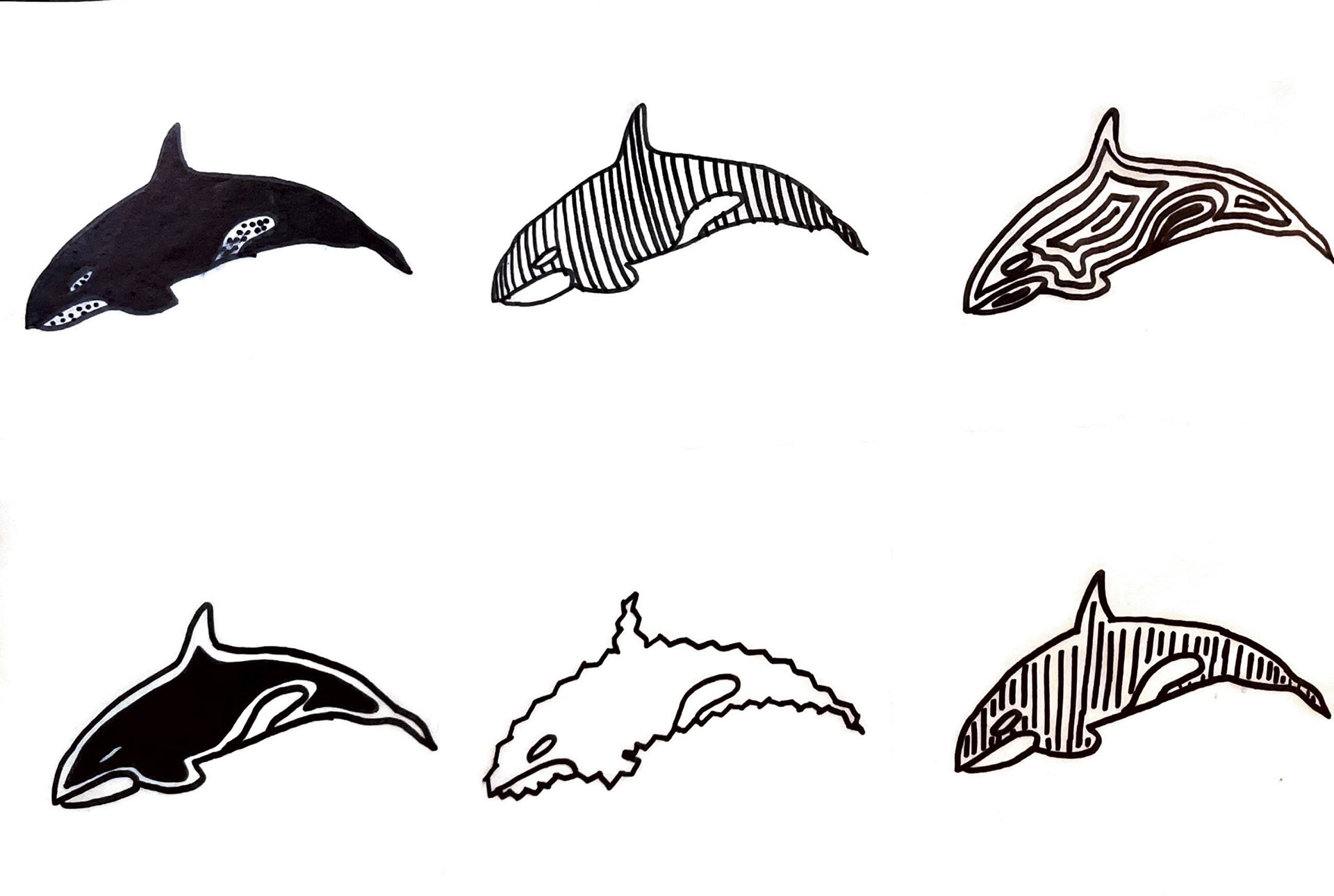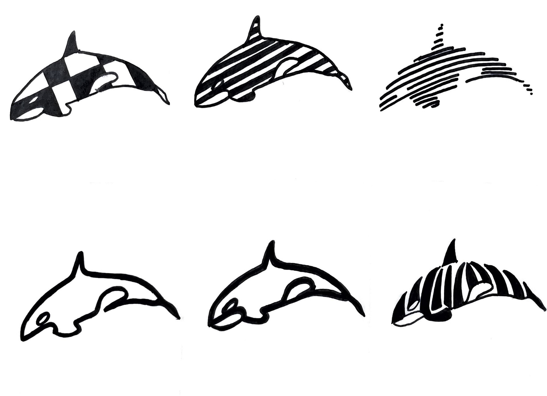 This was one of the last assignments for my Design Thinking class at Grand Canyon University. I created some transformational drawings and corporate logos from a picture of an orca. I enjoyed this project a lot. Included are my roughs for the transformation and corporate logo finals as well as some gesture drawings.