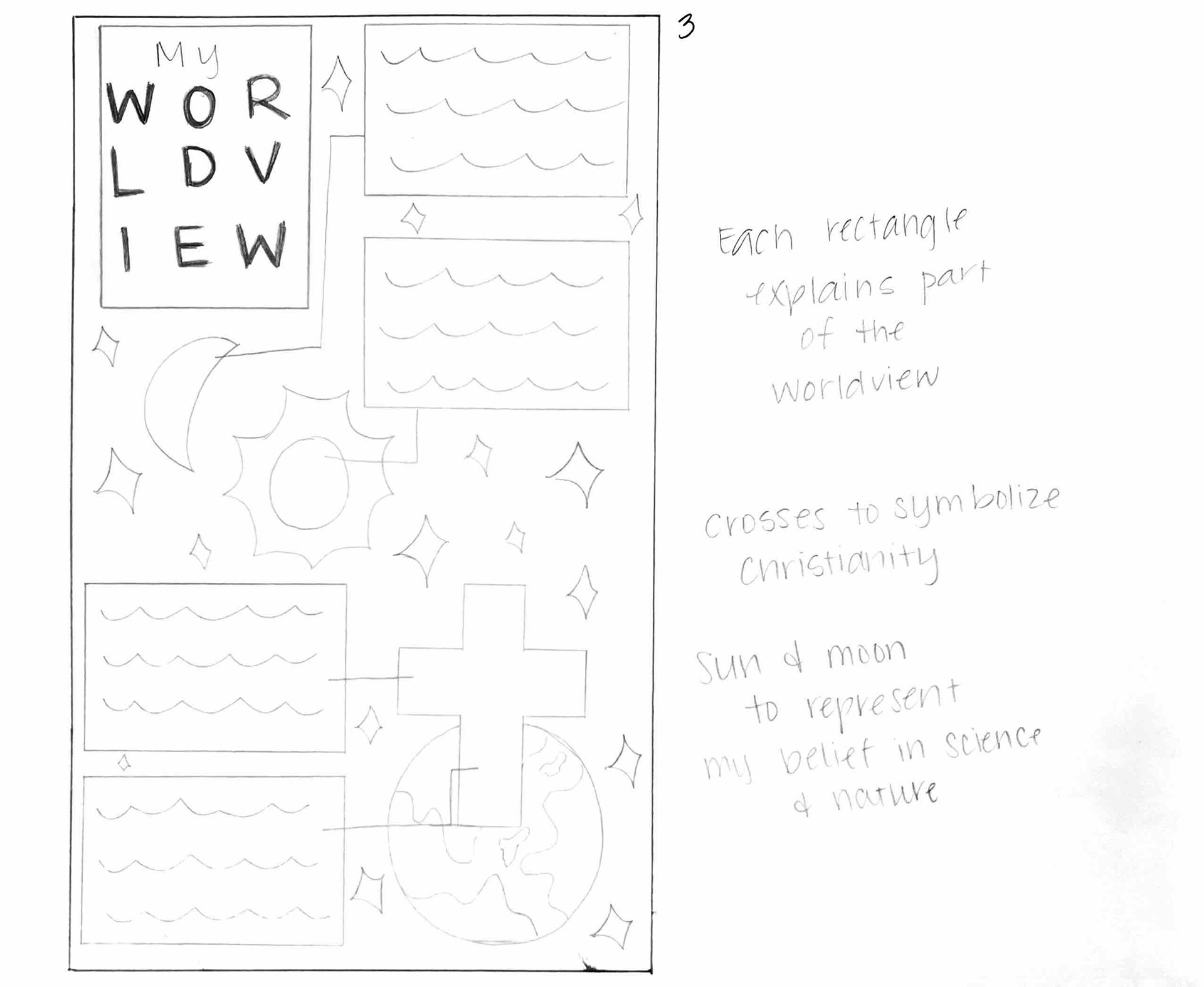 For my Creative Processes class at Grand Canyon University we were to make an infographic that explained our own worldview. Above is the final design I chose and below are the sketches and roughs for this project.